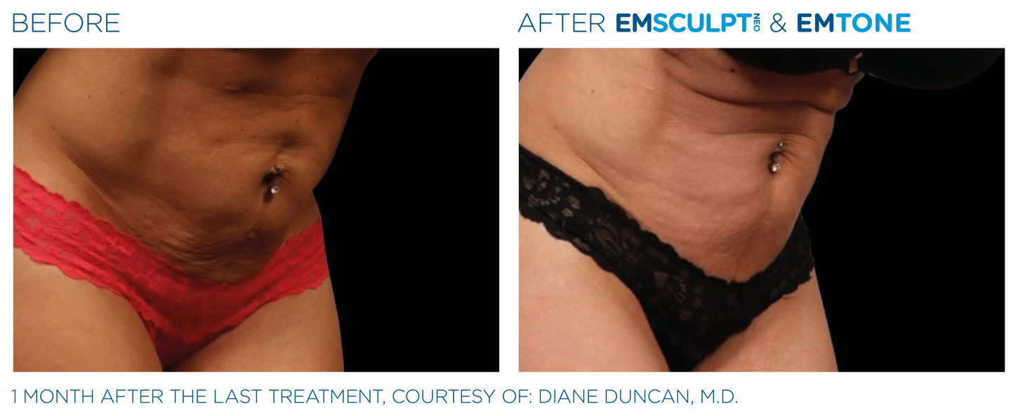 EMSCULPT NEO does not compare to liposuction as EMSCULPT NEO is a non-invasive procedure. It does not require surgery, needles, anesthesia, or any downtime. There is no other device in the aesthetic field that treats both fat and muscle simultaneously in a single treatment.